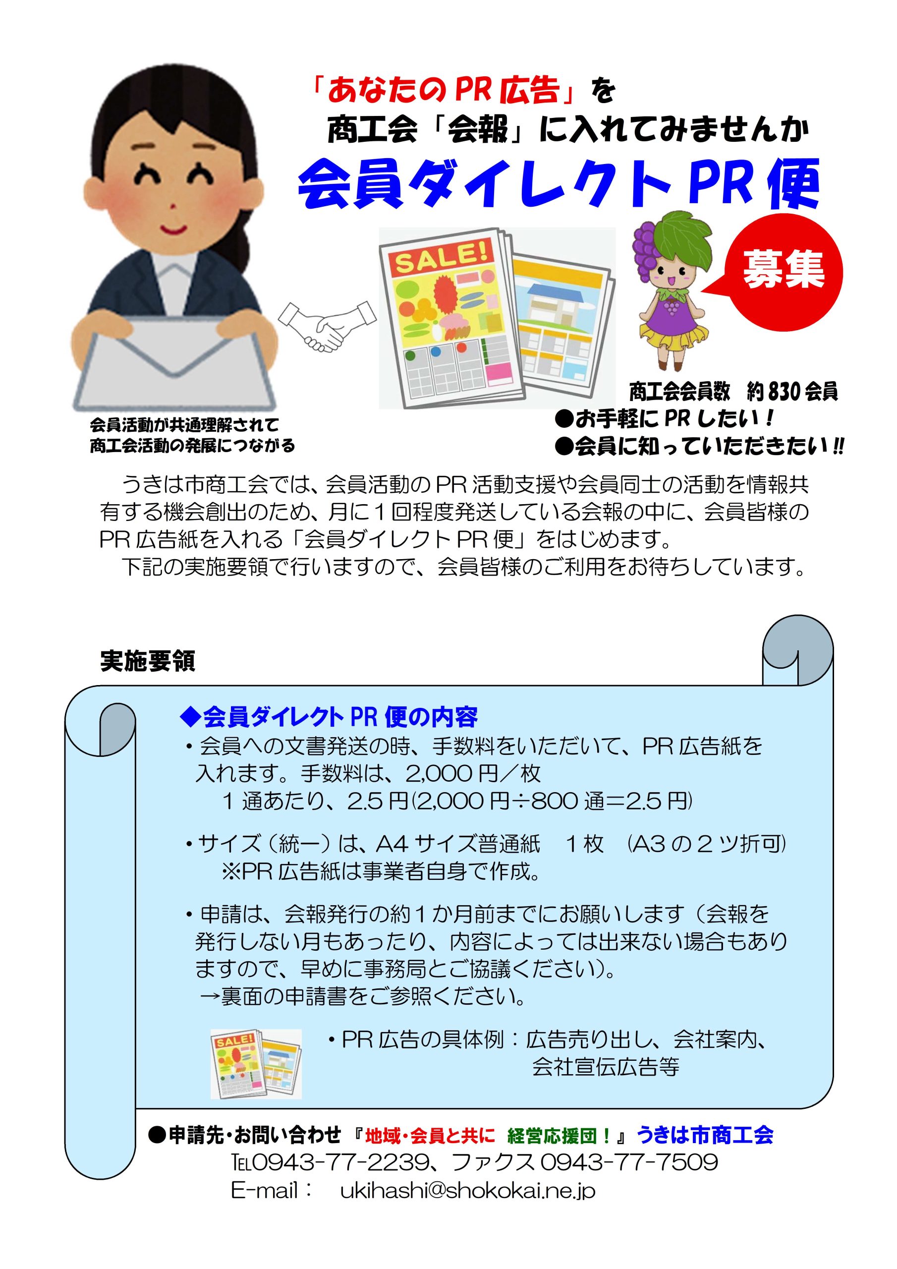 うきは市商工会では、「会員ダイレクトPR便」を始めます。